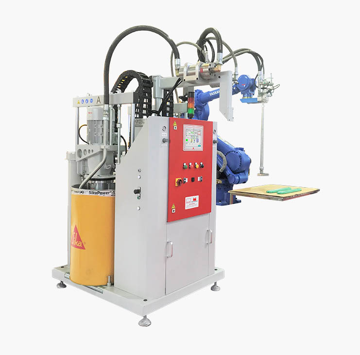 無溶劑2C或者多組份 PUR復合膠的加工裝置。齒輪泵對計量的影響尤為明顯。輸出容量,壓力和混合比自動監測和調整。 自動流量調節計量能力取決于涂布機的速度。此外,可視化控制界面可以快速瀏覽所有參數并能存儲所有 相關的工藝參數。因此,這類應用設備將根據客戶的要求為用戶 訂制適用的機器
