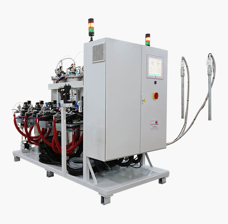 雙組分或多組分環氧樹脂計量混配系統,用于風力發電葉片模具涂膠及葉片粘接,船舶膠衣及航空噴涂等。輸出流量 2升 至高達 60l/min,依據需求選型或定制。
